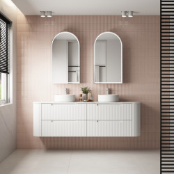 Otti Bondi Satin White Fluted Wall Hung Curve Vanity with Stone Top or Marble Top 600mm-1800mm