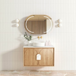Otti Bondi Natural Oak Wall Hung Curve Vanity with Stone Top or Marble Top 600mm-1800mm